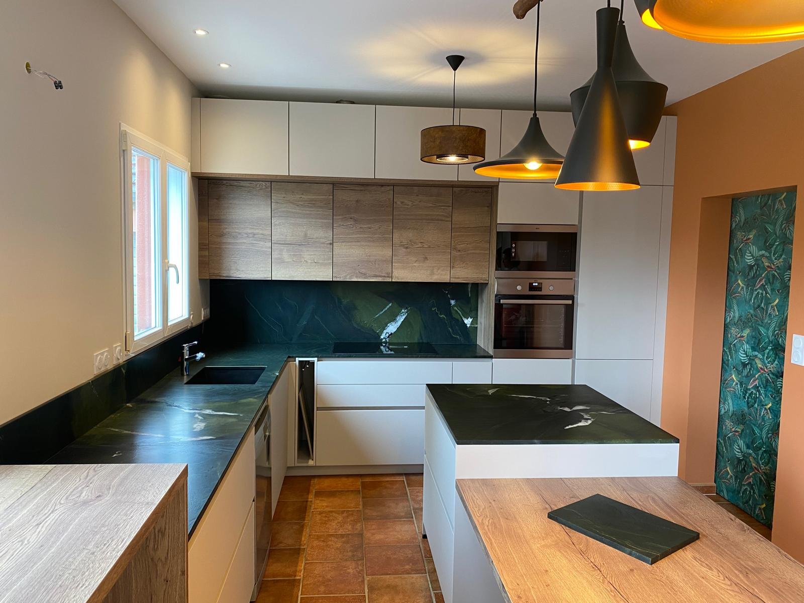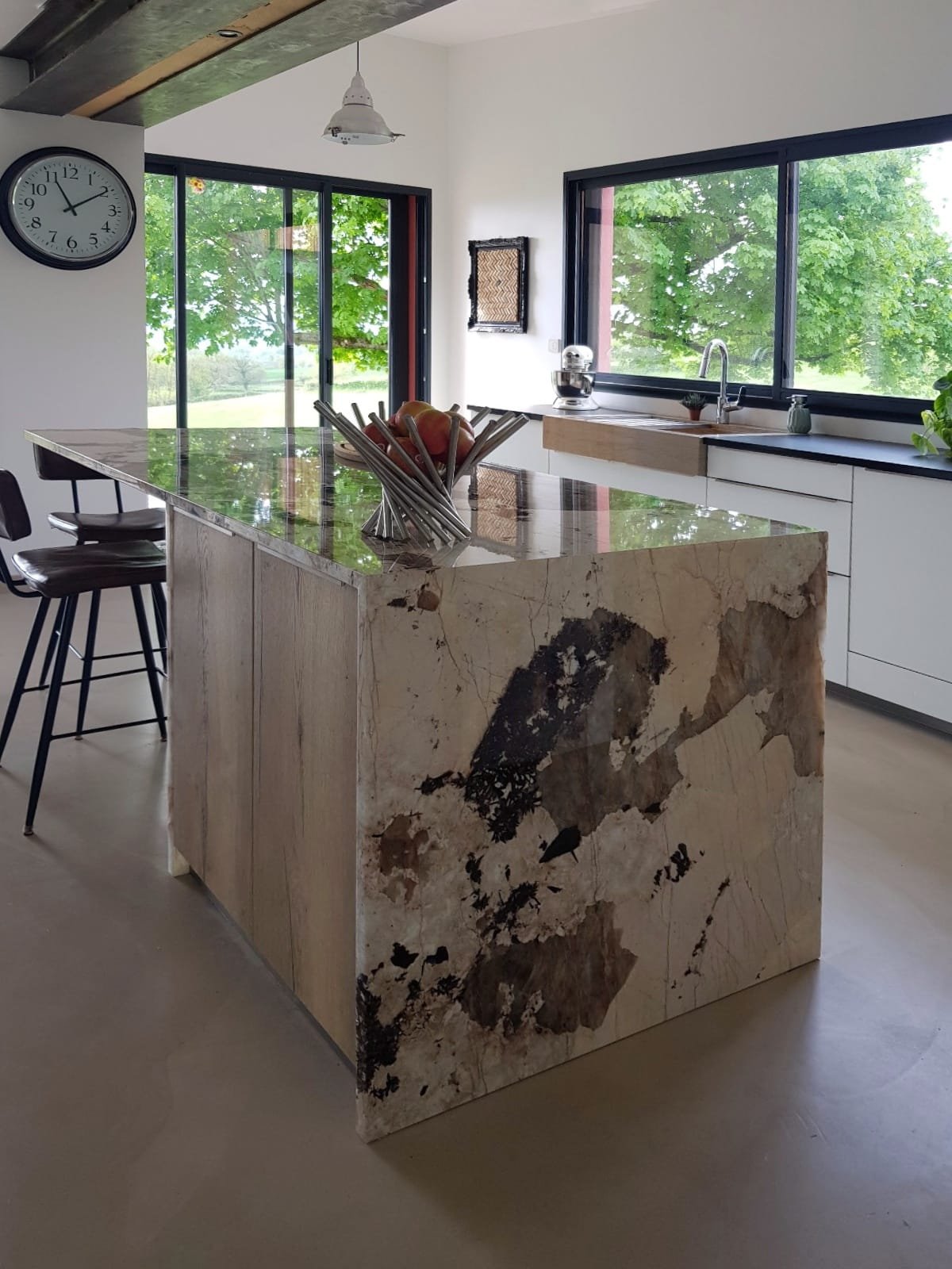 Spécialiste de la pierre naturelle en Saône-et-Loire, la Maison Menager conçoit et fabrique des éléments de cuisine sur mesure qui allient esthétique, robustesse et fonctionnalité. Chaque réalisation est façonnée dans notre atelier à Étang-sur-Arroux avec soin et précision, selon vos envies, vos besoins et les contraintes de votre espace.