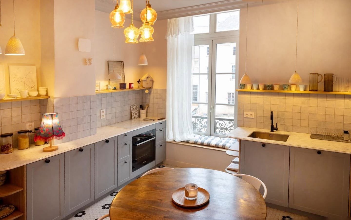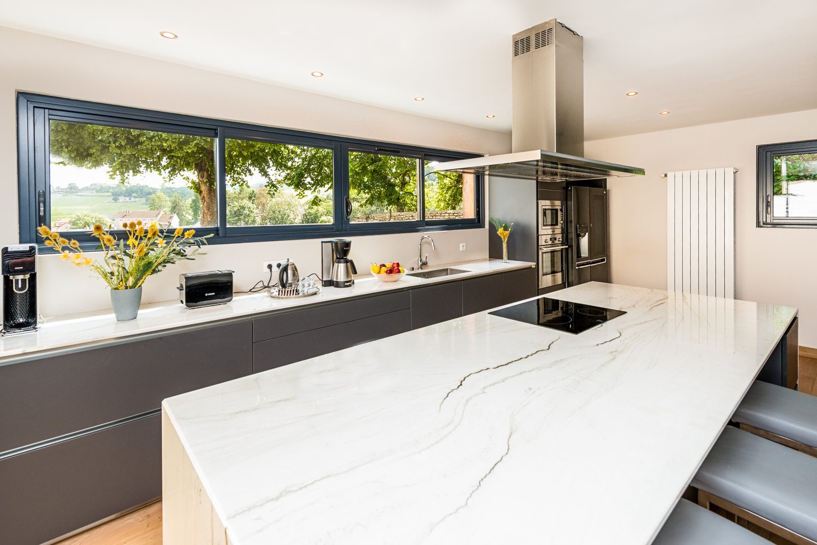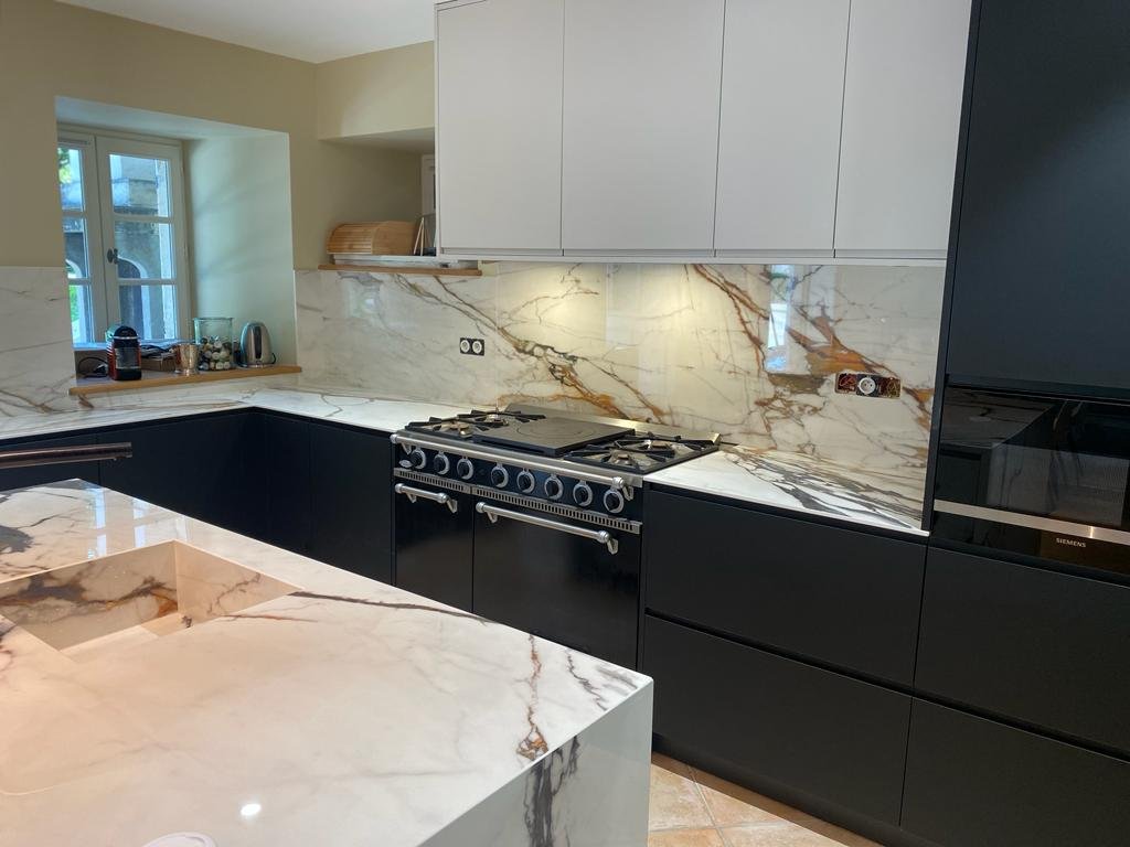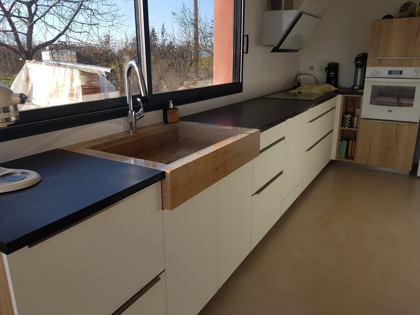 Pierre calcaire locale, la Pierre de Bourgogne (carrières de Buxy ou Comblanchien) apporte chaleur et authenticité à votre cuisine. Elle séduit par ses tons doux et son caractère intemporel.