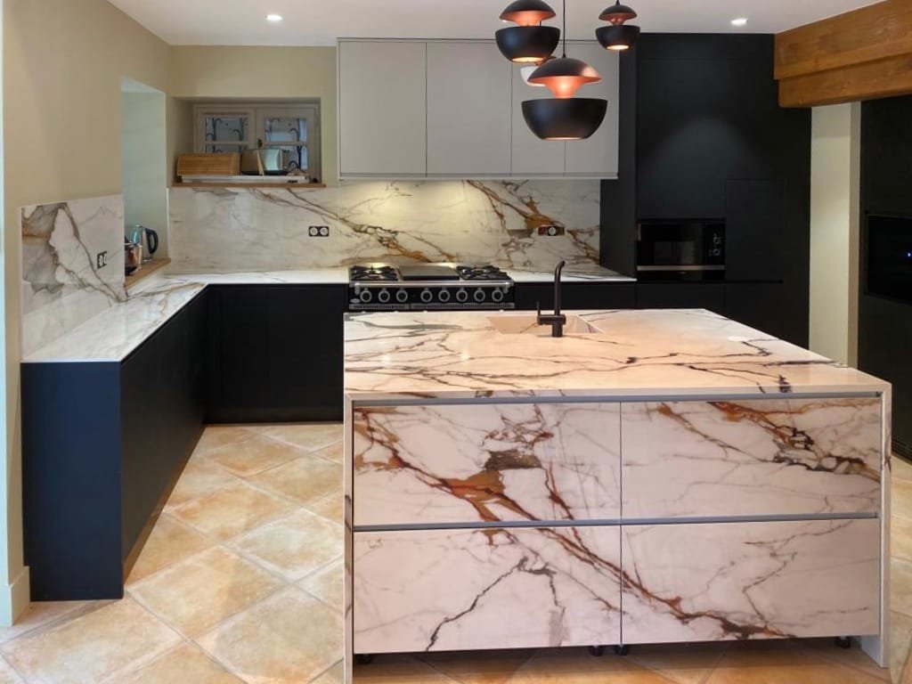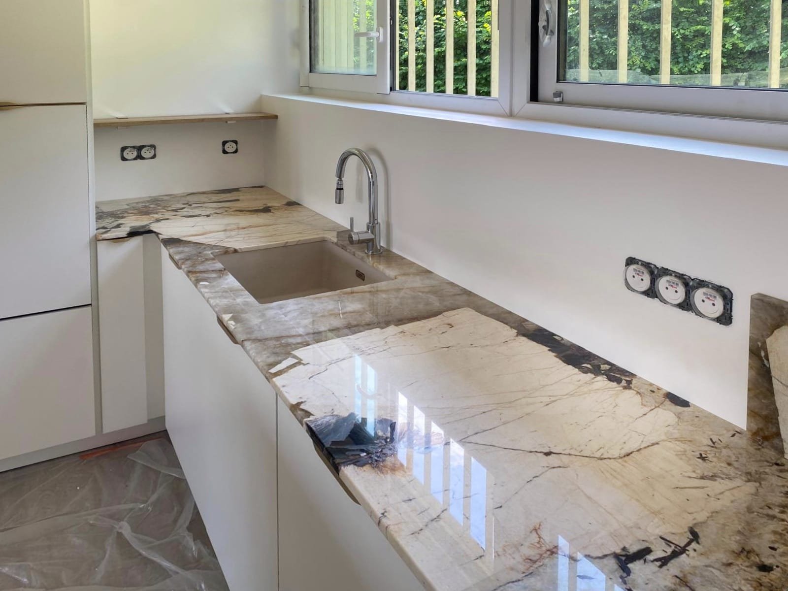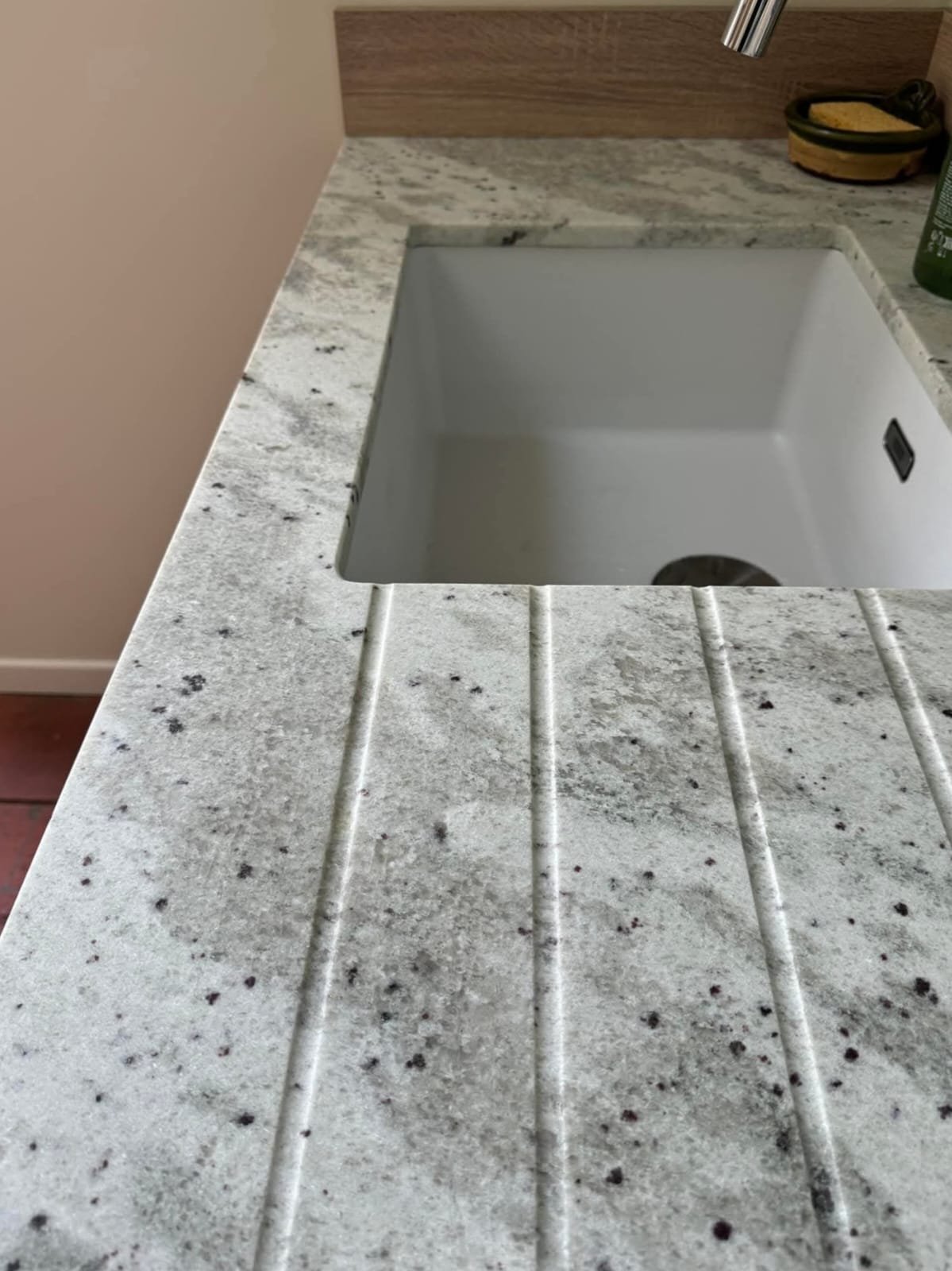 Roche naturelle aux veinages élégants, la quartzite allie l’esthétique du marbre à la résistance du granit. Idéale pour les plans de travail exigeants et durables.