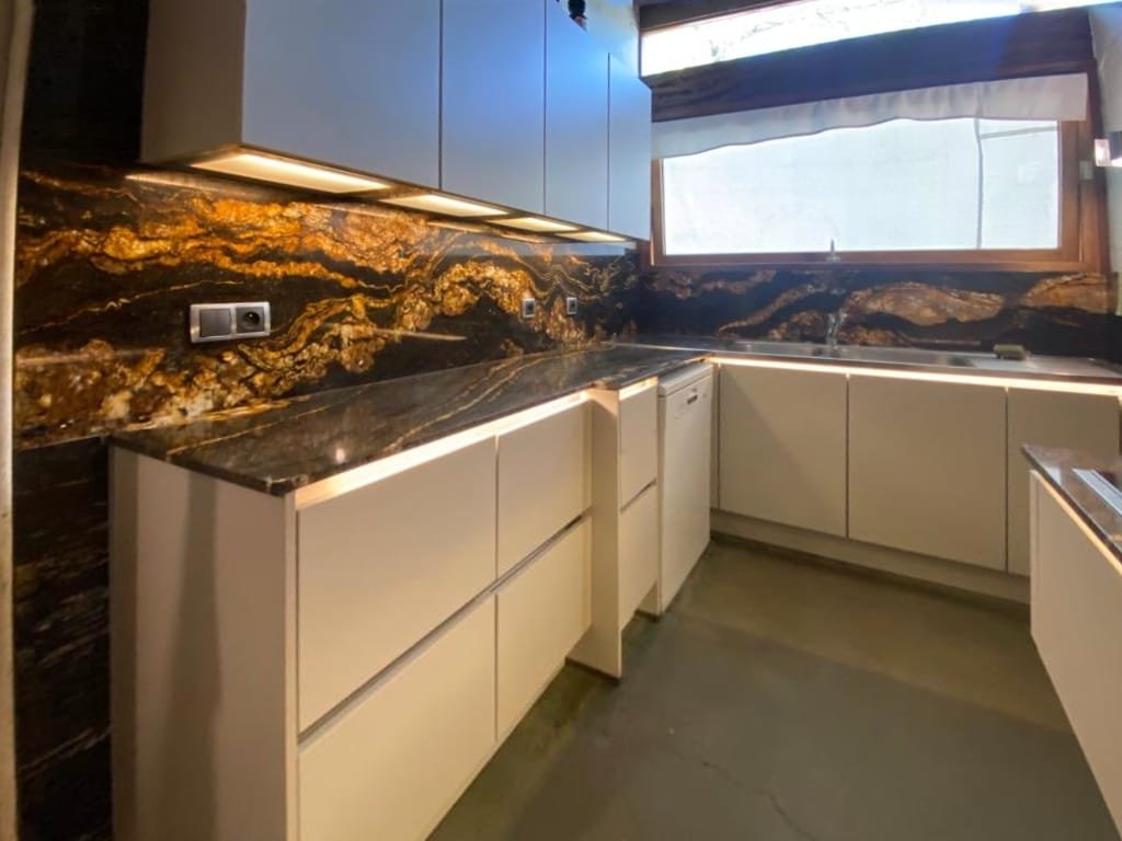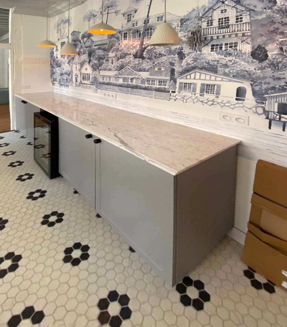 Pour une cuisine en totale harmonie, nous proposons la pose de revêtements muraux (crédences) et de sols assortis à vos plans de travail. Qu’il s’agisse de dallages en pierre naturelle, de parements muraux en granit ou de carreaux en céramique, chaque élément est pensé pour prolonger le style et l’élégance de votre cuisine jusque dans les moindres détails.